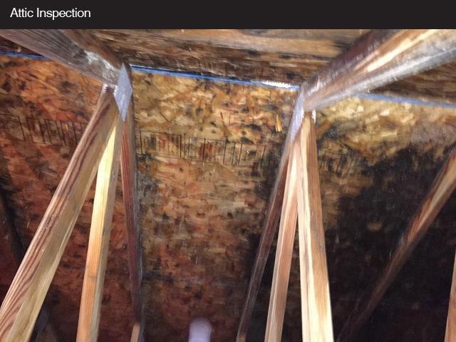 Challenge The homeowner discovered water damage inside their attic due to improper ventilation. This caused the sheathing and trusses to become wet. During the inspection, water staining was visible in