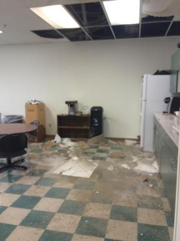 The property suffered significant water damage as a result of a drain backing up, causing water to overflow and penetrate the affected area.